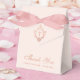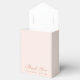 Uma caixa cor-de-rosa para o batismo de uma menina. No flape, ele tem rosa de crista de ouro com uma cruz. A mensagem Obrigado está escrita na parte inferior, num elegante guião rosa dourado, a ocasião e a data são escritas em bonés por baixo. O plano de fundo é cor-de-rosa-claro.