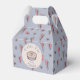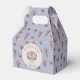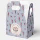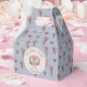 Caixas de favoritos personalizadas Adoráveis do outono/Queda para o menino. Ideal para chá de fraldas de outono, aniversário, primeiro aniversario, novo bebê, nova mãe e dia de Ação de Graças de 1rua. Possui uma torta de cereja desenhada à mão e um gingham macio e bronzeado contra um padrão de corações adoráveis em um fundo azul francês. Personalize com o nome do bebê. Impresso em ambos os lados. Basta clicar em "Personalizar este modelo" na página do produto e inserir o nome do bebê.