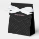 Caixa de Favoritos de Natal Mínimo de Negra e Branca. Esta caixa de favor é um simples design preto e branco minimalista moderno, apresentando um pequeno padrão de pontos contemporâneo. O roteiro cor-de-rosa "Feliz Natal" pode ser mudado para o seu cartões de natal favorito se você escolher.