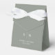 Esta elegante e moderna caixa de favoritos de casamento apresenta um simples design de texto verde e branco sábio que exude o estilo minimalista. Adicione suas iniciais ou monograma para torná-las completamente suas.