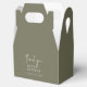 Este obrigado moderno de verde-oliva, a sua caixa de favoritos de casamento é perfeita para uma simples recepção de casamento. A design boho de madeira apresenta tipografia rústica única e na moda boêmica numa cor verde mínima de floresta florestal. Personalize as caixas com seus nomes e a data. Estas caixas de favoritos podem ser usadas para uma recepção de casamento, chá de panela ou qualquer evento!