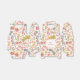 A pretty pattern of butterflies in soft green, pink, blue and yellow.