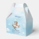Celebrate your little aviator with this adorable boy baby shower favor box featuring a cute teddy bear pilot flying his vintage airplane. Designed in a charming blue and brown color palette, this favor box adds the perfect touch of adventure to any baby boy celebration. The watercolor-style teddy bear aviator illustration creates a warm and whimsical atmosphere, making the box ideal for filling with candies, small gifts, or keepsakes. Perfect for aviation-themed baby showers, airplane parties, or little pilot celebrations, this customizable favor box lets you personalize names, dates, or messages with ease. Make your event unforgettable with this stylish and high-quality boy baby shower favor box that guests will love taking home as a sweet memento.