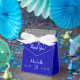 Caixinha De Lembrancinhas Monograma branco azul-real de prata de aniversário