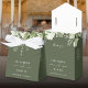 Caixa de lembrança de casamento em verde oliva elegante com folhagem floral personalizada com seus nomes, iniciais do monograma, data do casamento e mensagem especial. Concebido por Thisisnotme©