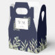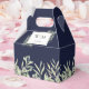 Uma elegante caixa de lembrança de casamento com delicadas folhas de aquarela em um fundo azul marinho emoldurando suas iniciais monogramadas, data especial e mensagem de agradecimento em tipografia moderna. Uma maneira perfeita de dizer obrigado aos seus convidados! Concebido por Thisisnotme