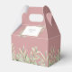 Uma elegante caixa de favores de casamento com folhas de aquarela delicadas em um fundo poeirento de rosa que enquadra suas iniciais de monograma, data especial, e obrigado que você coloca na tipografia moderna. Uma maneira perfeita de dizer obrigado aos seus hóspedes! Projetado por Thisnotme©