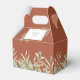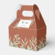 Uma elegante caixa de favor de casamento com folhas de aquarela delicadas em um fundo teracotta que enquadra suas iniciais monográficas, data especial, e obrigado que você coloca na tipografia moderna. Uma maneira perfeita de dizer obrigado aos seus hóspedes! Projetado por Thisnotme©
