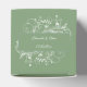 Personalize uma caixa de favoritos de casamento única para convidados com esta caixa de favoritos de casamento florescente de Moss Green. O design de caixa de favoritos apresenta uma folha elegante floresce com fundo colorido correspondente. Personalize com os nomes do noivo e da noiva junto com a data do casamento. Material adicional disponível com esta design também.