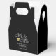 Obrigado seus convidados com essas belíssimas e elegantes caixas de favoritos de casamento. MR & MRS. com noiva e nomes de noivos com data de sobrenome e casamento. Preto e branco com um coração de folha de ouro falso para dar esse toque extra. Ajustado qualquer tema de casamento ou esquema de cores. Todo o texto pode ser editado ou excluído.