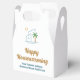 Esta linda caixa de presente de mudança de casa de uma empresa de imóveis tropicais apresenta uma moderna casa de praia azul com uma palmeira costeira fresca e sol da ilha. Personalize essas caixas de marketing com o nome do seu agente e empresa de imóveis para um corretor de imóveis ao longo da costa.