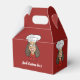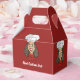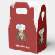 Cabeça de chef com chapéu, corcunda vermelha e texto personalizado.