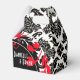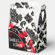 Uma caixa na moda ousada com uma cor damasco glamourosa de preto, branco e vermelho. Use o botão "Personalizar" para personalizar com seu próprio texto. Se precisar de ajuda, entre em contato comigo ANTES de fazer seu pedido. E-mail: cheryl@glamprettyweddings.com/contact. Convites iguais, guarde as datas, guardanapos de coquetéis de papel. outros formatos de caixas de favor e muitos outros produtos disponíveis. design original de Cheryl Daniels © 2014.