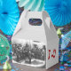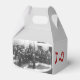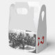 Caixa de favores ao estilo gable de cinzas com uma imagem de uma orquestra Grande Banda na frente, e o título de uma das maiores músicas de Glenn Miller, "No humor." em bares de música vermelha nas costas. Os lados têm duas notas de música vermelha. Ver o convite correspondente, envelope, saco de presente grande, etiqueta, vinheta salva-vidas, vinhetas personalizadas e papel de embalagem. Veja toda a coleção Patriotic 40s Favor Box em TOUCHES ESPECIAIS | Seção Favoritos para festas.