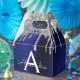 Caixinha De Lembrancinhas Nome de Monograma Brilho Azul Marinho Prata