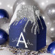 Caixa de presente de papelaria com monograma e inicial em brilho metálico prateado e azul marinho, falso papel alumínio, com glitter brilhante e metal escovado. Isso torna o presente perfeito para aniversário de 16 anos, casamento, chá de noiva, aniversário de casamento, chá de bebê ou despedida de solteira para alguém que ama luxo e estilos chiques.
