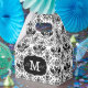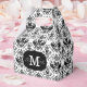 Caixinha De Lembrancinhas Nome do monograma do Damasco Branco preto clássico