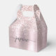 Caixa personalizada com nome em grafia com monograma metálico brilhante em rosa dourado Glamour feminino. Estes desenhos apresentam seu primeiro nome em uma linda tipografia de letra manuscrita com cauda ornamentada em folha metálica cor de rosa dourada falsa com bordas brilhantes e glamurosas. Estas caixas de presente femininas e elegantes são ótimas para distribuir, presentes, presentes para convidados e guloseimas durante uma próxima festa de aniversário, aniversário de 16 anos, chá de bebê, churrasco, recepção de casamento, despedida de solteira, chá de noiva, aniversário de casamento e muito mais.