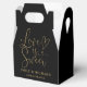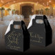 Esta caixa de lembrança de casamento em preto e dourado com tipografia elegante e minimalista pode ser personalizada com suas informações em tipografia chic. Projetado por Thisisnotme©
