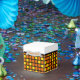Laranja e design amarelo com um deslocamento e texto que diz: "Obrigado!"