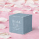 Obrigado seus convidados chás de fraldas com esta simples e fofa caixa de favoritos personalizada azul-câmara. Apresentando o tipo branco (obrigado que você não é editável, mas o texto menor é) em um plano de fundo com um efeito de chambray (observe - nenhuma textura real aqui), esta caixa é perfeita para os favores do chá de fraldas e muito mais. Projetada para coordenar com a coleção de chás de fraldas Chambray de Lea Delaveris Design, esta caixa de favoritos de chá de fraldas pode incluir nome, data ou outro texto. Encontre convites para chuveiros de bebês de chambray, suprimentos de festas e presentes na coleção.