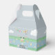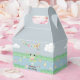 Delicie seus convidados com essas Caixas de Favor de Obrigado pelo Aniversário do Sapo Fofo, apresentando uma adorável cena de desenho animado pastel de um lago. Um sapinho feliz com libélulas, patinhos de chapéu de festa, folhas de lótus e nuvens suaves cria um design divertido e infantil que combina perfeitamente com uma festa de aniversário com tema de sapo.