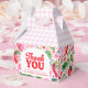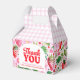 Este obrigado de aniversário para uma festa de aniversário de junção gêmea apresenta um padrão de morangos e florais aquosos no fundo e uma xadrez rosa no topo. Há um arco branco frente e trás com uma mensagem de obrigado. Você pode personalizar a mensagem e os nomes neste design. Veja toda a coleção correspondente. Toda a trabalho de arte é ilustrada e protegida por direitos autorais por Kaitlyn Thomas.