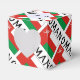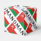 A bandeira Omani, numa caixa de favor com coração à frente, com a palavra OMAN em letras negras, pregada, numa diagonal para uma estética mais agradável. Um quadrado branco deixa um lugar para um nome. Façam caixas de adversários para sua reunião familiar ou uma boa festa de viagem para um amigo.