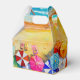 Ondas em uma praia arenosa e banhistas sob guarda-sóis coloridos, as caixas de lembranças de empena são divertidas para qualquer ocasião de verão.