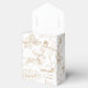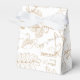 Um padrão de folhas de ouro em contorno é o ponto focal para esta bela caixa de favoritos. A letra minúscula, escrita por escrito e o esquema moderno fazem disto um presente atraente para os vossos hóspedes. Adicione facilmente seus nomes, mensagem pessoal de 'obrigado' e data de casamento usando o modelo fornecido. As inúmeras opções de design neste jogo de casamento, desde faixas de ouro até arranjos de folhas de outono espalhados por pó de ouro, permitem que você misture e combine seus favoritos enquanto mantém um olhar coeso geral. Perfeito para o exterior, jardim e casamentos outono. Procure ID655 para ver o conjunto completo.