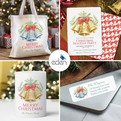 Three bells and red bow and foilage watercolor Criado por Sarah Trett