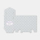 Nesta caixa de presente elegante, um belo padrão de imagens decorativas de flores quad brancas é disposto em um fundo cinza prateado. Uma faixa oval roxa emoldurada contém seu texto personalizado em roxo e cinza na parte de trás. Apropriado para qualquer ocasião, incluindo graduações, aniversários, Natal ou qualquer evento! Todo o texto pode ser facilmente personalizado. Obrigado à MilachiDesigns no etsy.com pelo padrão usado neste design.