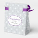 Nesta caixa de presente elegante, um belo padrão de imagens decorativas de flor quad branca é disposto em um fundo cinza prateado. Uma faixa oval roxa emoldurada contém seu texto personalizado em roxo e cinza na parte de trás. Apropriado para qualquer ocasião, incluindo formaturas, aniversários, Natal ou qualquer evento! Todo o texto pode ser facilmente personalizado. Créditos a MilachiDesigns no etsy.com pelo padrão usado neste design.