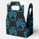 Um padrão de pata de cachorro imprime em cor azul. Design de estilo de desenho animado original. Tudo o que é visto é impresso em papel. Caixas de favoritos personalizadas. Excelente para eventos relacionados com cães.