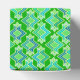 Padrão geométrico do papel de parede em tons de turquesa, azul e verde-claro num fundo verde-jade profundo
