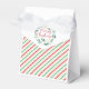Um padrão riscado em cores vermelhas, douradas e verdes com decoração de Feliz Natal faz com que esta caixa de presentes se destaque. Este modelo pode ser personalizado adicionando seus nomes, ano e texto personalizado no verso da caixa.