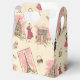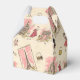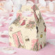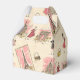 Um bom tipo de caixa de favores com uma imagem de mulheres quentes cor-de-rosa, pretas e douradas e os marcos proeminentes em Paris à beige. Há o L’arc de Triumphe, a Torre Eiffle e a bela Basílica do Sacre Coeur no cume de Montmartre.