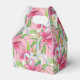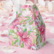 Caixa de favores de festas mostrada em um adorável impressão de lírios cor-de-rosa com uma cor de fundo rosa. Personalize este item ou comprar como está.