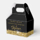 Elegante caixa de favorecimento de falso partido negro e dourado para qualquer ocasião com a redação editável "Obrigado por comemorar comigo" e um nome divertido e engraçado para a assinatura, e espaço para o seu próprio ditado no verso - use a modelo para criar a sua pequena caixa de favoritos para um aniversário, bat mitzvah, aniversário, festa de aposentadoria, chá de panela, chá de fraldas ou pequeno encontro pessoal de comemorações. Use a Ferramenta Design para editar cores e fontes de fundo.