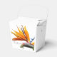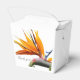 Obrigado aos convidados do evento de casamento com estas caixas de favores que exibem a foto de um florescimento laranja da Pássaro tropical da Fábrica de Paraíso impresso sobre um fundo branco. Também chamada de Flor de Crane. Um design floral adorável para um casamento temático tropical ou luau.