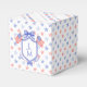The patriotic stars watercolor monogram crest gives this wedding favor box a festive and timeless look that any sophisticated bride will love. Personalize with your initial inside the crest. Colors include red and blue.