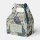 Estes Elegantes Pavões Azuis e Flores Sage Caixas de Favor Verdes apresentam pavões azuis desenhados à mão e lacrimejados em ramos de árvores da Magnolia, floridos de cheio a tinta preta. Personalize com seus detalhes clicando em "Personalizar este modelo" na página do produto. Todo texto é editável. Impresso em ambos os lados.