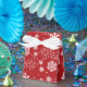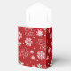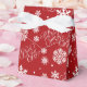 Ilustração de texto de paz e alegria com decoração de flocos de neve brancos em fundo vermelho
