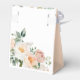 Peach Floral Baby In Bloom Girl Favor Box apresenta lindos pessegueiros e flores florais brancas e verde juntamente com caligrafia moderna.