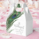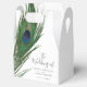 Um conjunto único de caixas de propinas brancas, com tema Peacock Feather, adaptado especificamente ao seu futuro evento de casamento. Há os detalhes do seu casamento na frente e os seus convidados únicos obrigado sua mensagem no verso.