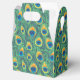 Caixa de favoritos verde, verde, azul, amarelo e laranja com padrão de pena de peacock exótico. Disponível em outros produtos.