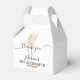 Caixas de favores estilo gable para chá de noiva Pérolas & Prosecco apresentam pérolas drapeadas de uma taça elegante e com seus detalhes em letras chiques. Itens CORRESPONDENTES em nossa coleção