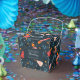 This lively holiday pattern features a mix of hand-drawn seasonal elements including candles, ornaments, winter foliage, sweets, and festive sprinkles—all set against a rich dark background. The night-sky palette creates beautiful contrast, making the warm reds, creams, greens, and golden details glow. Inspired by classic holiday décor and cozy winter nights, this design feels energetic, warm, and full of seasonal cheer.