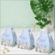 Este design apresenta um conto de fadas do livro de histórias Peter Rabbit sobre um fundo de aquarela azul e balões coloridos com folhas verdes de eucalipto.
