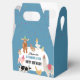 A hand drawn cute blue petting zoo party animals design featuring illustrations of a goat, goose, hamster, llama, pig, baby chick, cow and rabbit . A beautiful petting zoo themed design ideal for kids petting zoo themed birthday parties. Customize this cute petting zoo animals birthday favor box and make it your own!